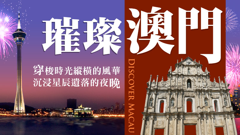 澳門經過數百年葡萄牙殖民,造就東洋相當獨特的城市景致。眾多的中西式教堂與古蹟,都被列為世界遺產,漫步在澳門本島的歷史城區路線,甚至可以感受到精采典雅的澳門過往時光。澳門唯一阿拉伯式迴廊的港務局大樓、羅馬圓拱門廊的崗頂劇院與最出名的大三巴牌坊,都是令人驚豔的地標。