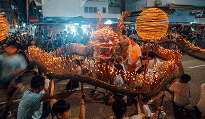 中秋節大坑舞火龍:想感受與眾不同的中秋節氣氛, 到大坑去吧!節日期間,大坑有近300人舞動著長67公尺、插上逾萬枝線香的巨大火龍,穿梭於大街小巷,既熱鬧又壯觀!