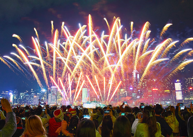 香港跨年倒數: 當鐘聲敲響午夜,璀璨奪目的煙火和燈光在維多利亞港上空綻放。五光十色的煙花音樂匯演,為你帶來無與倫比的視覺盛宴!密切留意來年的跨年倒數慶典,與摯愛共聚這場盛會,送舊迎新,迎接新一年!