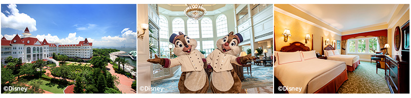 香港迪士尼樂園酒店猶如童話故事中的宮殿,由華麗的維多利亞式的建築以至精緻的一磚一瓦,每一個細節都將你帶進迪士尼故事情節,沉醉典雅的時光。樓高六層的酒店建築完美融合海濱度假區的懷舊風味和迪士尼的夢幻氣氛,而且配有先進的設備,華麗的大堂常設現場音樂表演,讓賓客尊享華貴高雅的住宿體驗。