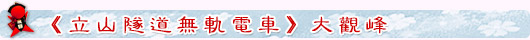 大觀峰的立山隧道無軌電車,是所有來立山黑部旅遊客瀏覽美景的坐車之一,穿梭於立山隧道的無軌電車,外觀就像一列串聯起來的巴士,負責帶領遊客到達海拔2300公尺的大觀峰。大觀峰除了本身擁有視野極佳的壯闊美景,也是一座建立在嚴寒高地的交通轉運站;不僅羅列著五花八門的主題紀念品,在供有暖氣的室內瞭望台上,您可一邊享用精緻的風味美食,一邊欣賞由赤澤山岳等後立山連峰交織出的立山全景。